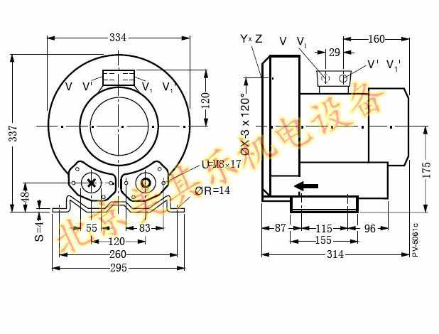 2GH510/单相1.5kw高压鼓风机尺寸图: