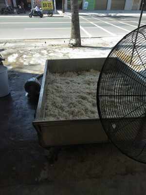 因热水气会上升,所以又单采用了一台工业电风扇,来加速物料上方空气的流动,所以效率大大提升,缩短了工时,节省时间,可比常规操作节省三分之二的耗时。