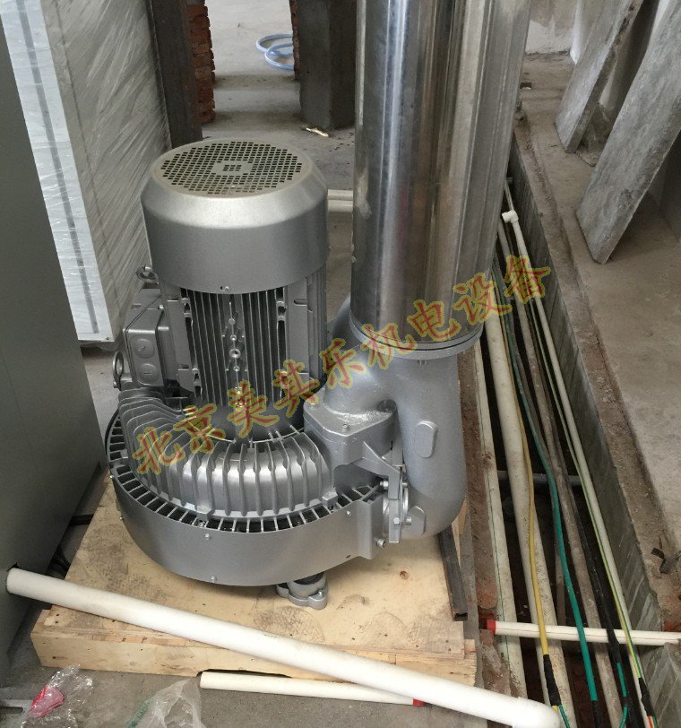 具体用途:采用高压风机的正压送风,所需求的风量比较大,通过将风输送到反应容器内一系列作用之后,通过各管道传至操作室内,因所需压力至少在100mbar以上,所以采用的20kw的。