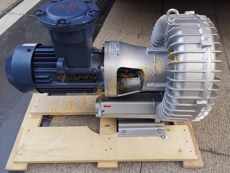 防水汽耐油污高压吹吸风机,改变常规风机样式,轴承采用中置,放到叶轮里侧,防爆电机与泵头采用联轴器链接,充分隔离水汽,外加隔离罩,防水防尘,同时在风机高速运行时,能保护操作人员安全。