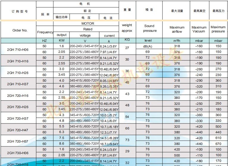 如箭头所示,我们发现这款720的系列型号非常接近,可以使用,再确定电机型号,为4.3kw的,电机功率越大,压力也就越高。