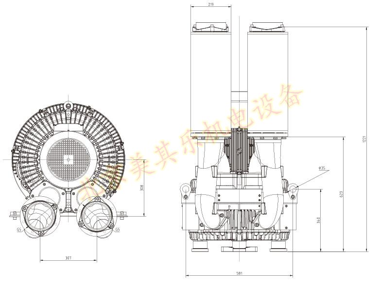 2GH940鼓风机参数性能表:只可立式安装,5寸管螺纹